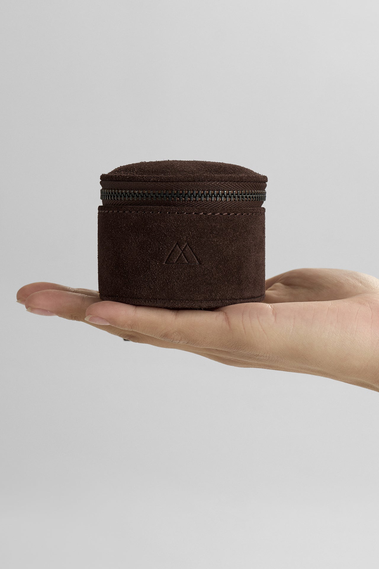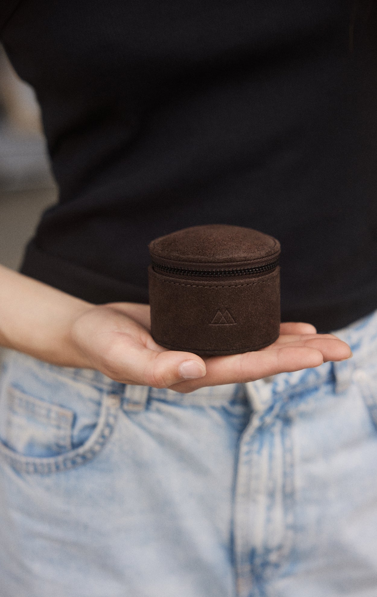 Et lite smykkeskrin i semsket skinn – perfekt til oppbevaring av favorittsmykkene dine.