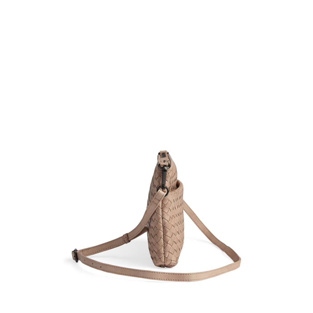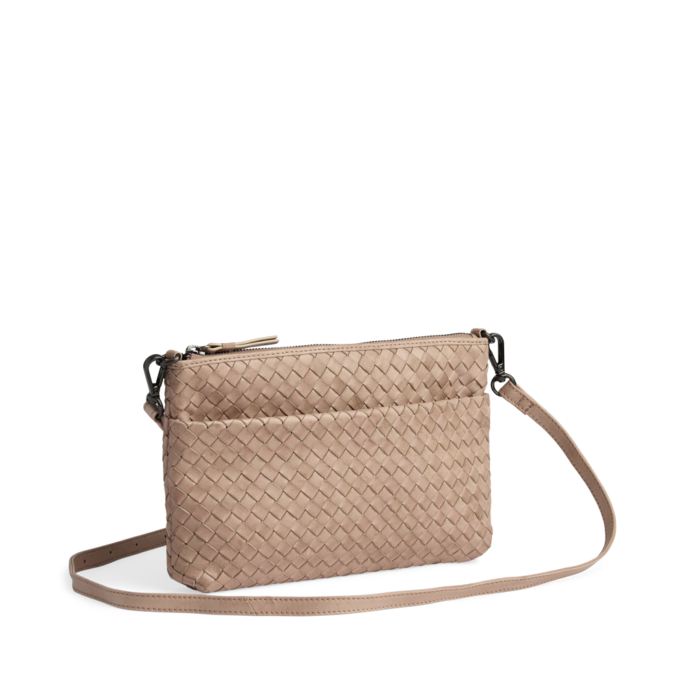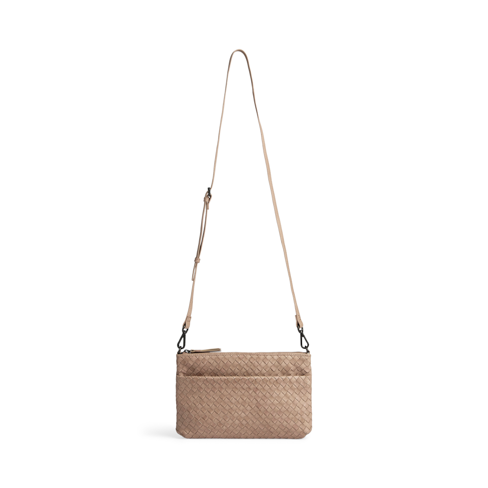 En eksklusiv crossbody veske i håndflettet skinn med et tidløst og elegant uttrykk. Det romslige designet og den justerbare stroppen gjør den ideell for hverdagen på farten.