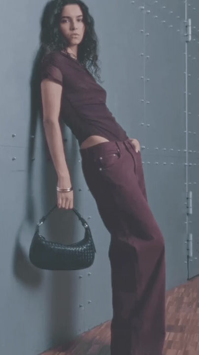 Liten og stilren veske med håndflettet look – perfekt til det nødvendige i hverdagen.