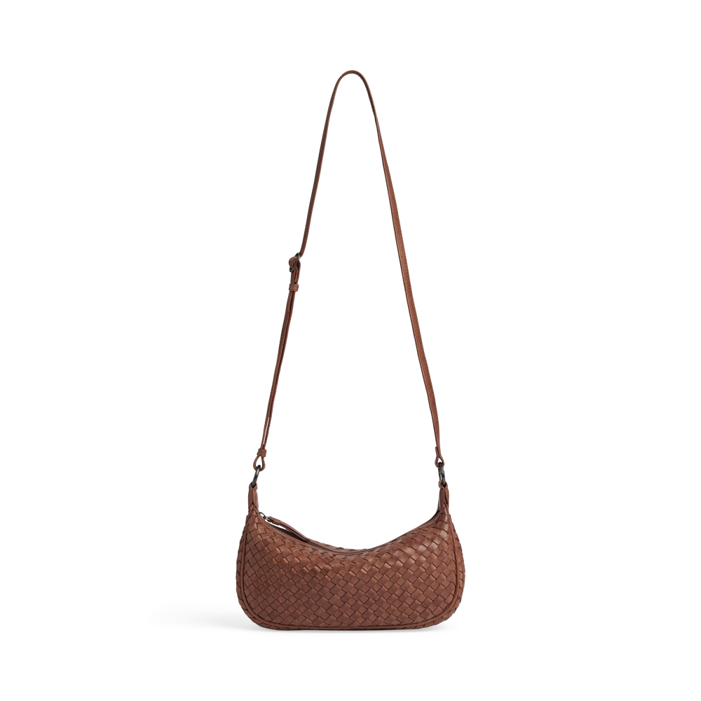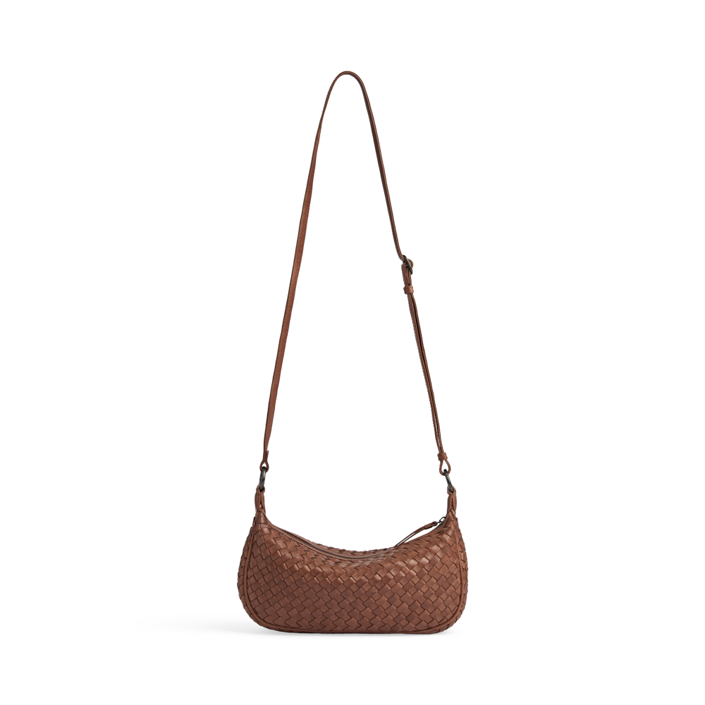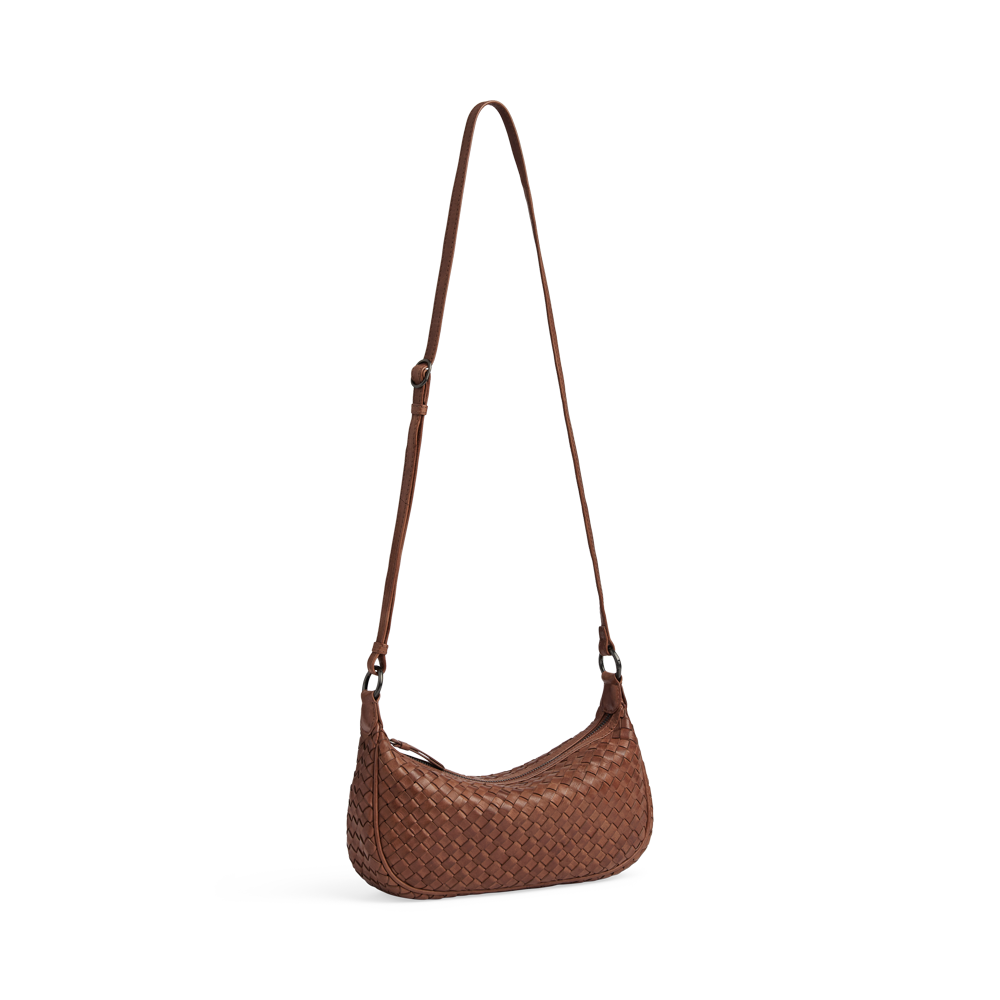 Liten og stilren veske med håndflettet look – perfekt til det nødvendige i hverdagen.