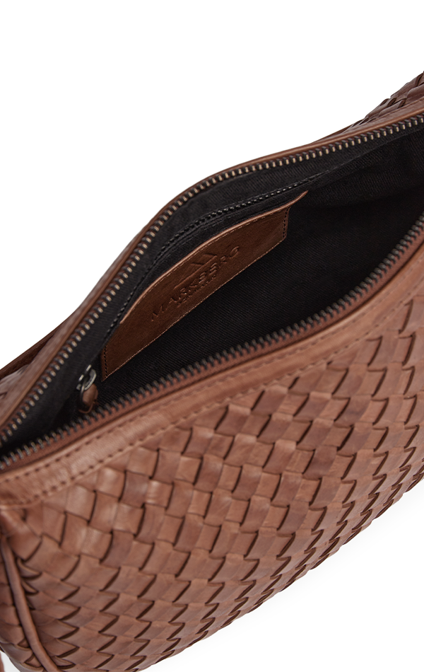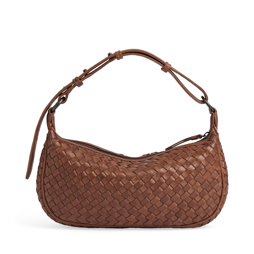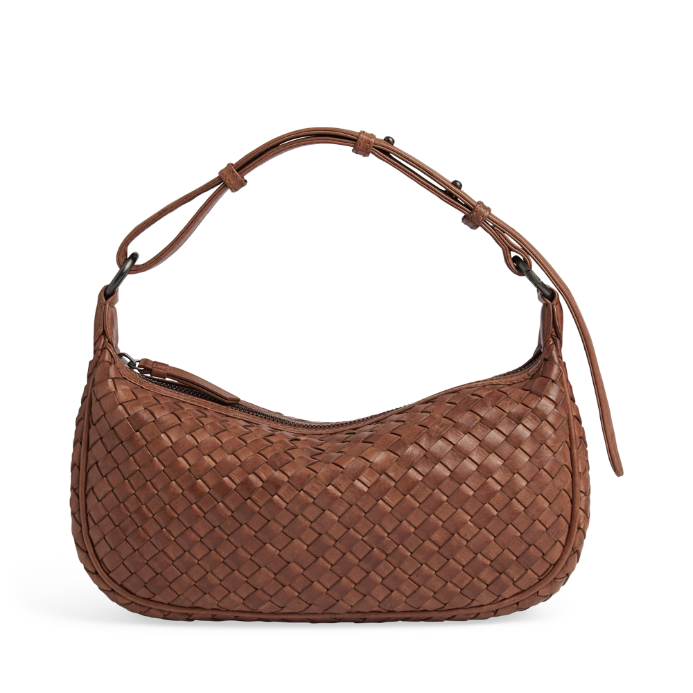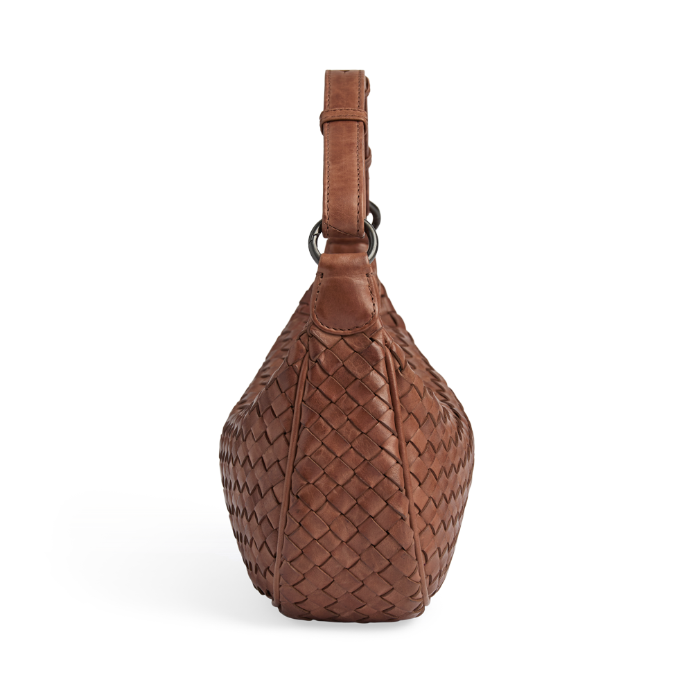Liten og stilren veske med håndflettet look – perfekt til det nødvendige i hverdagen.
