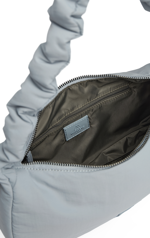 • Produsert i 100 % veganske materialer • Lett og slitesterkt materiale • Vannavvisende • Rynket hank med justerbar snøring • Innvendig glidelåslomme • Lukkes med glidelås • Kan bæres over skulderen eller i hånden
