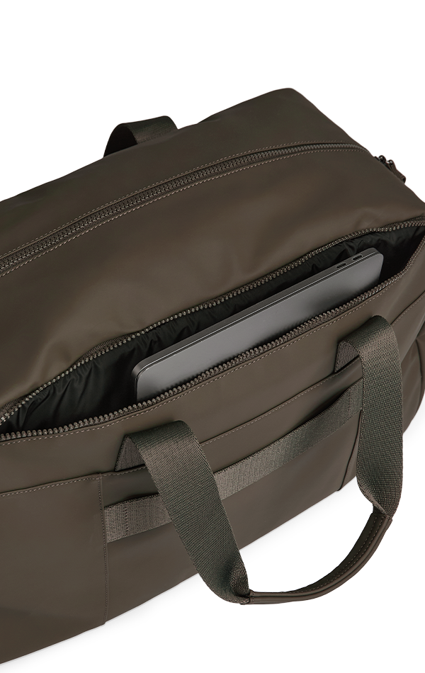 Weekendbagen har et separat datarom med polstring for ekstra beskyttelse. Lommen åpnes fra toppen av bagen, slik at du enkelt kan ta PC-en inn og ut uten å åpne hovedrommet.