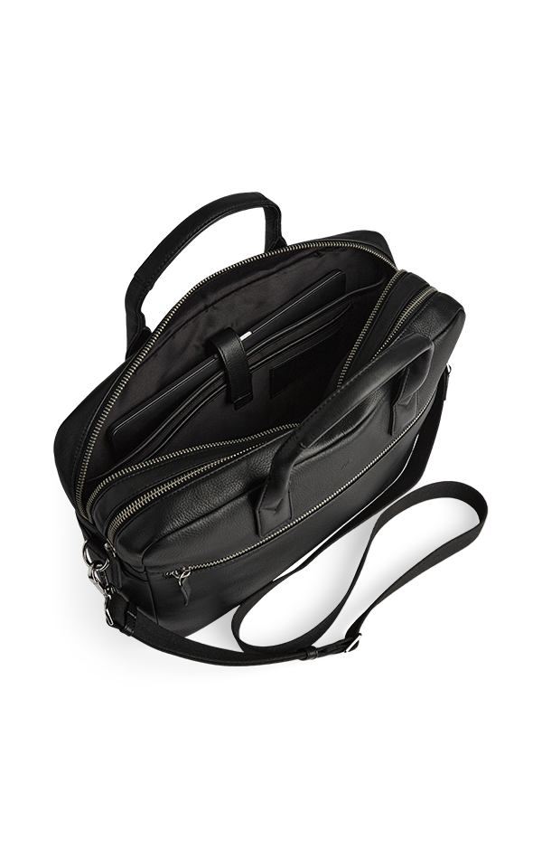 Tidløs og elegant PC veske i mykt kalveskinn. De to separate rommene gjør det enkelt å organisere både datamaskin, iPad og dokumenter – perfekt til både jobb og reiser.
