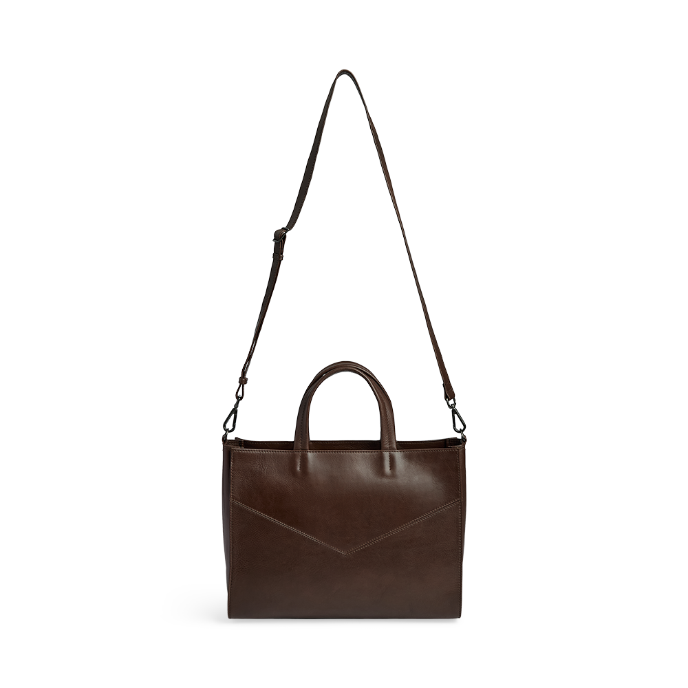 Vegetabilsk innfarget skinn basert på naturlige materialer. Teksturen og fargen kan variere, noe som er skinnets naturlige karakteristikk. Denne typen skinn utvikler patina ved bruk. Dette gir vesken et unikt uttrykk.
