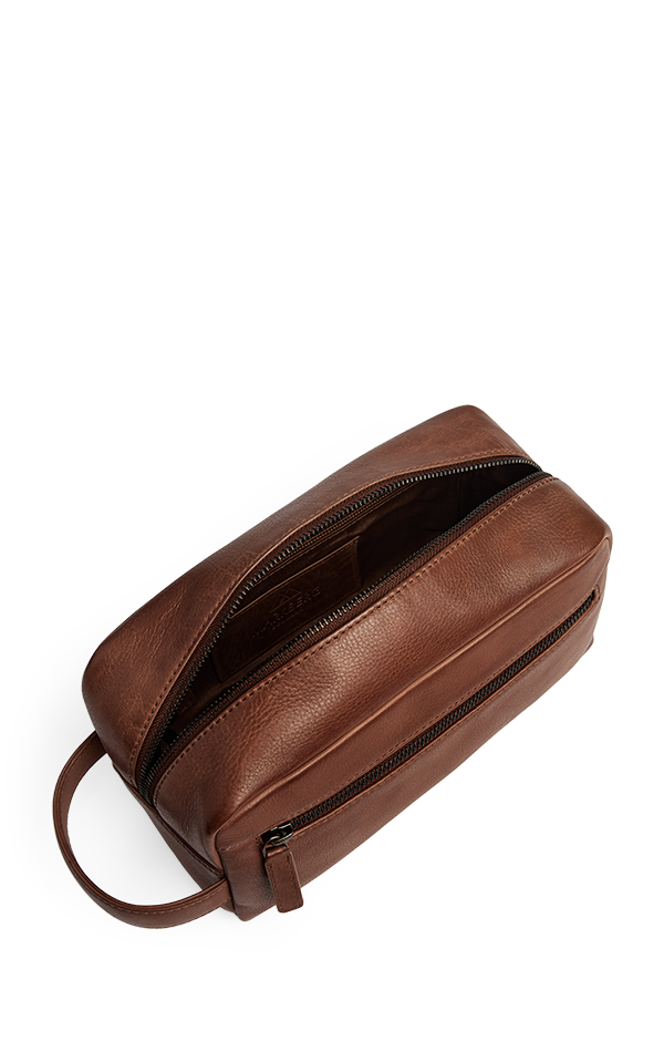 Eksklusiv toalettmappe i mykt kalveskinn med et tidløst design. Mappen kombinerer funksjonalitet og kvalitet – perfekt for både reise og hverdagsbruk.