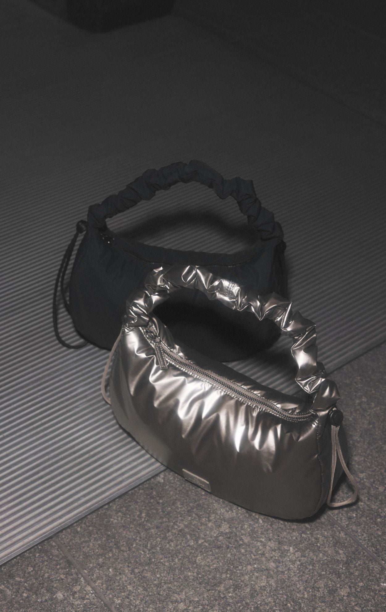 En elegant håndveske med en sporty vri – ideell for både hverdagsbruk og fest. Den rynkede, mykt vatterte stroppen kan justeres med snøring og gir vesken et personlig og moderne uttrykk.
