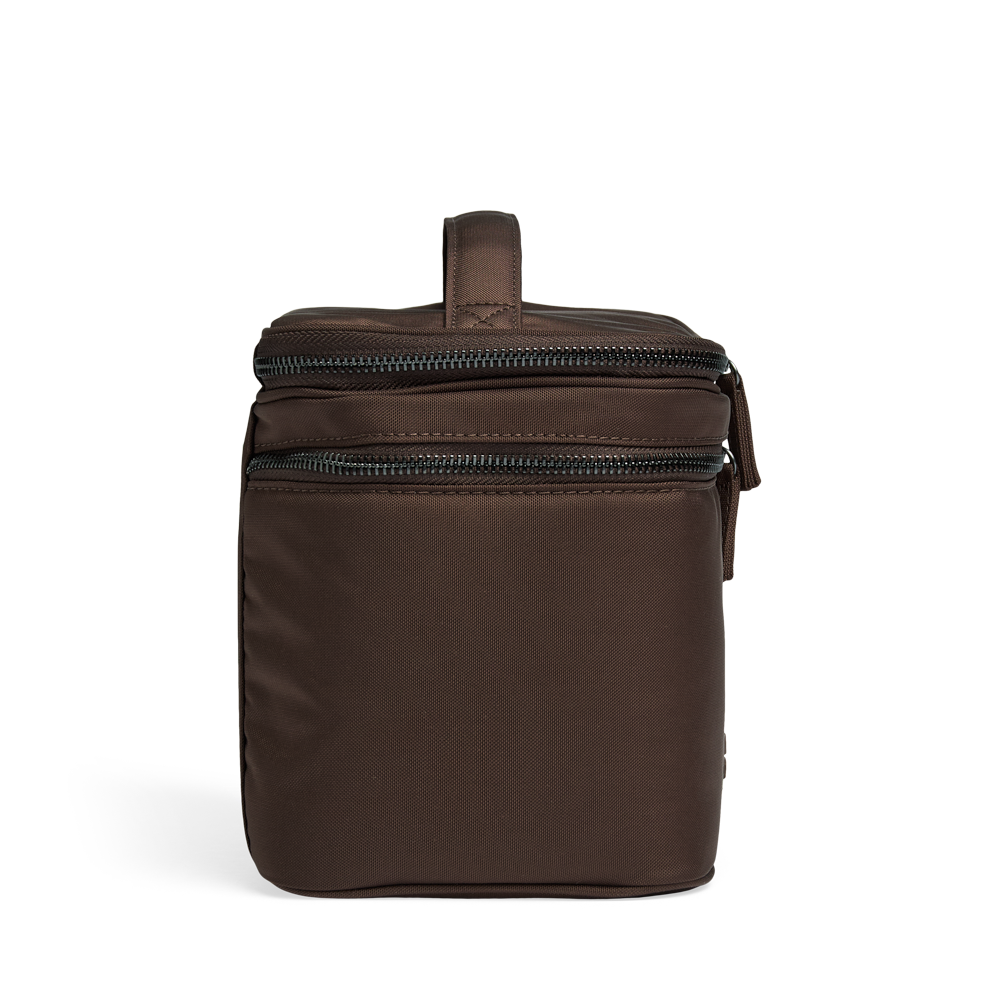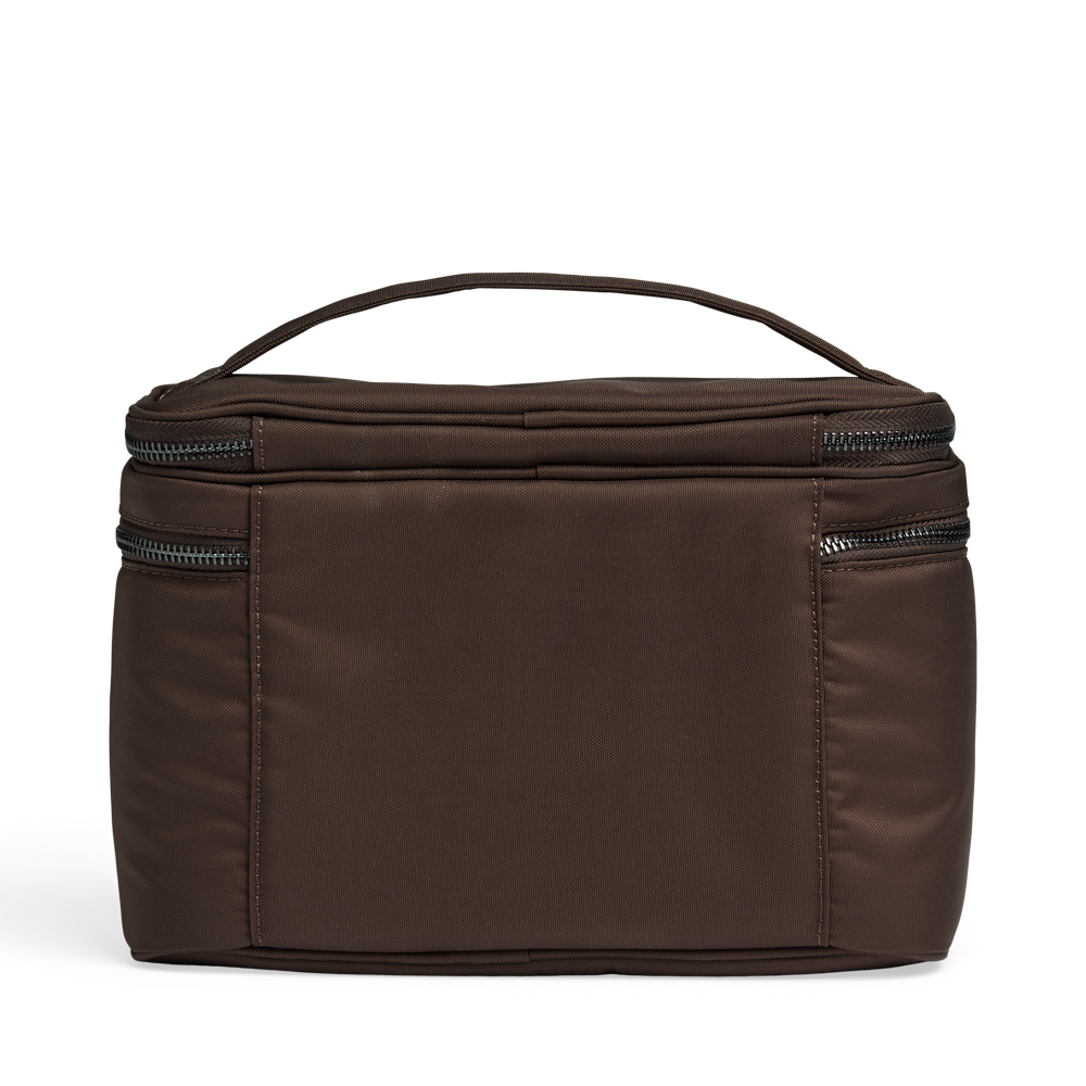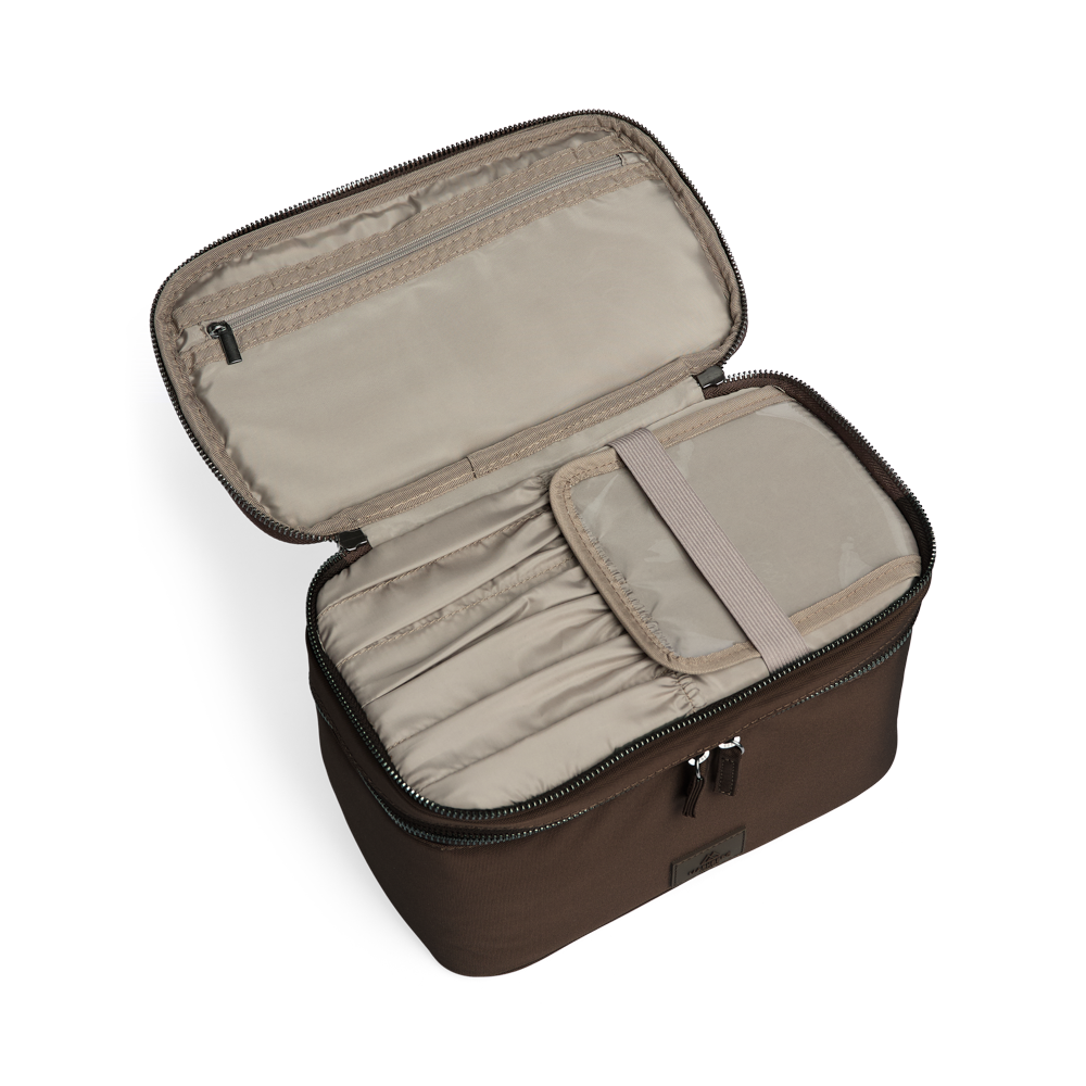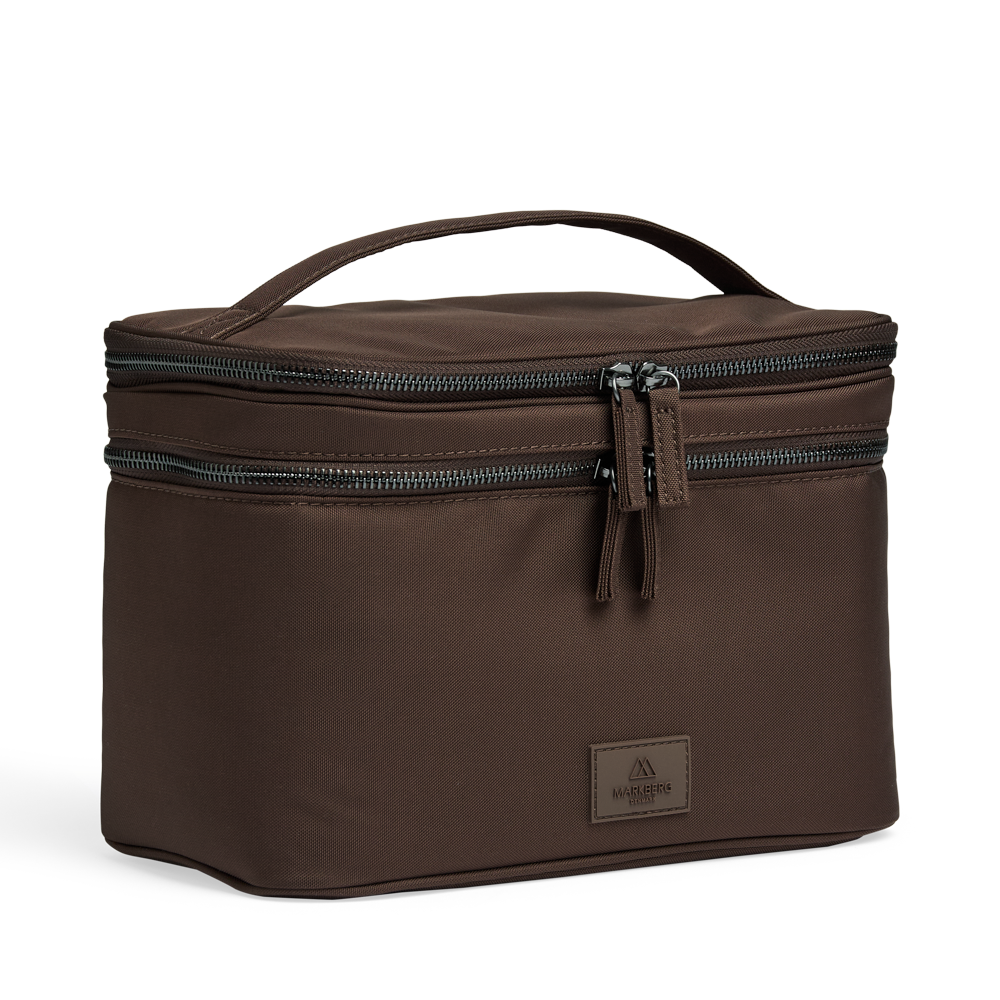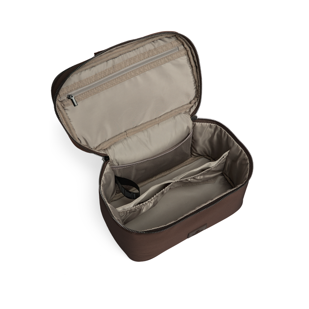 En funksjonell toalettmappe i vannavvisende, veganske materialer med praktisk inndeling og god plass. De separate rommene gir god oversikt og gjør den ideell til organisering av sminke og pleieprodukter – både hjemme og på farten.