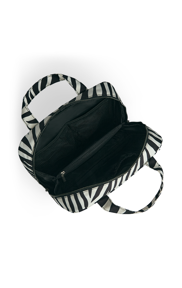 En funktionel toilettaske i vandafvisende, veganske materialer med praktisk ruminddeling. De mange indvendige lommer giver godt overblik og gør den ideel til organisering af dine plejeprodukter på farten.