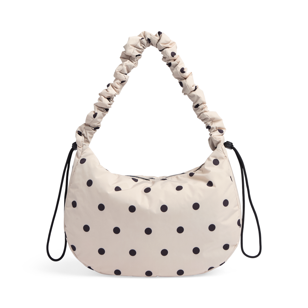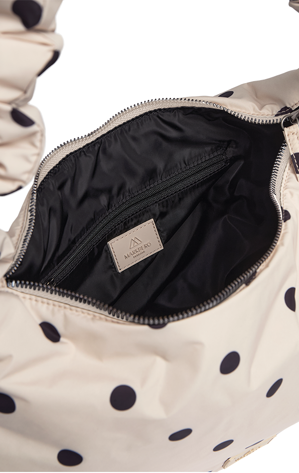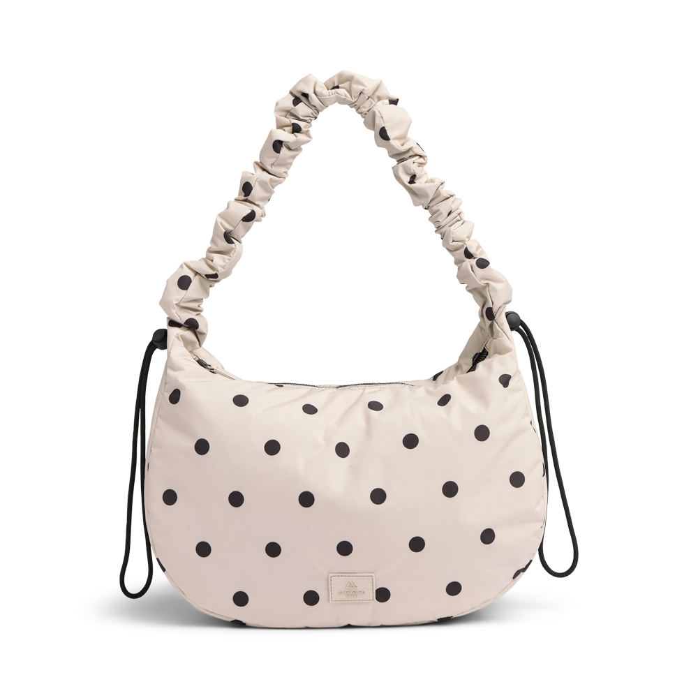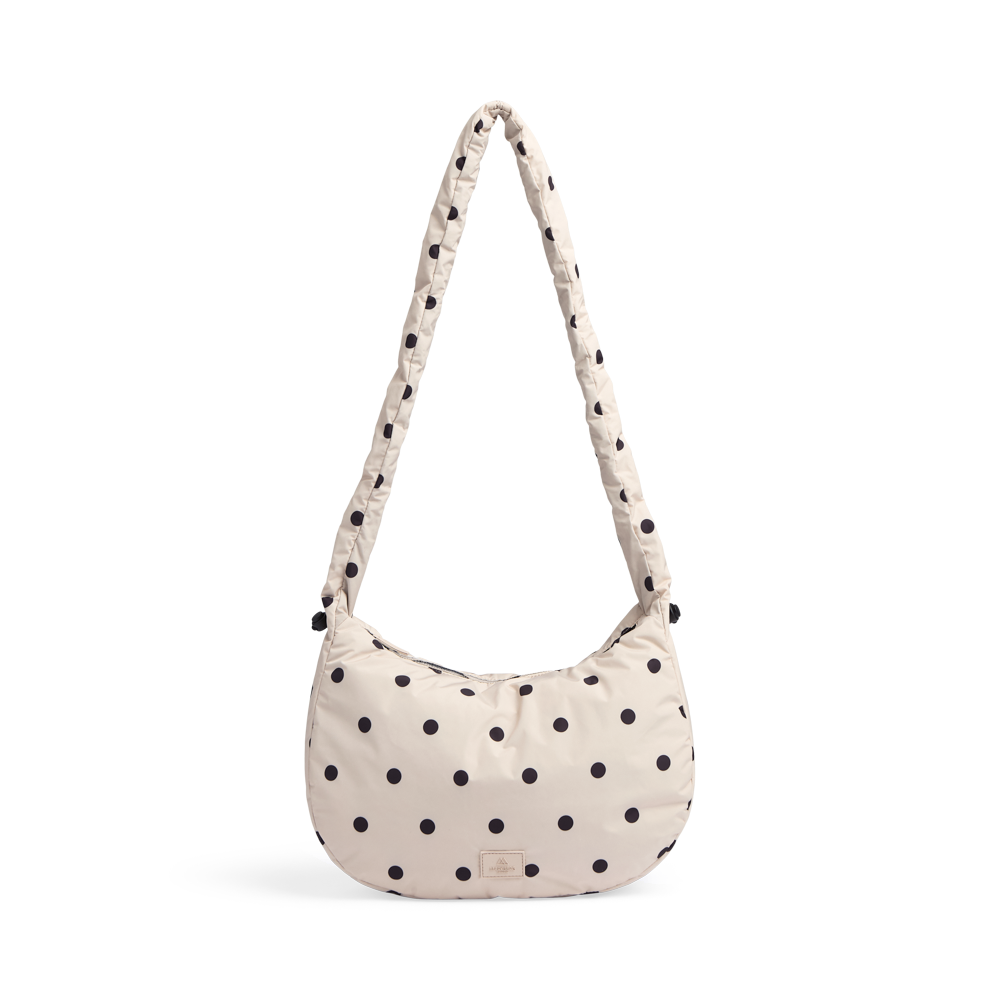 En elegant og leken crossbody med moderne polkaprikker. Kan brukes både crossbody eller over skulderen. Den mykt polstrede remmen med rynkeeffekt og justerbar snor gir vesken et unikt og trendy uttrykk, mens det klassiske polkamønsteret tilfører et feminint preg.