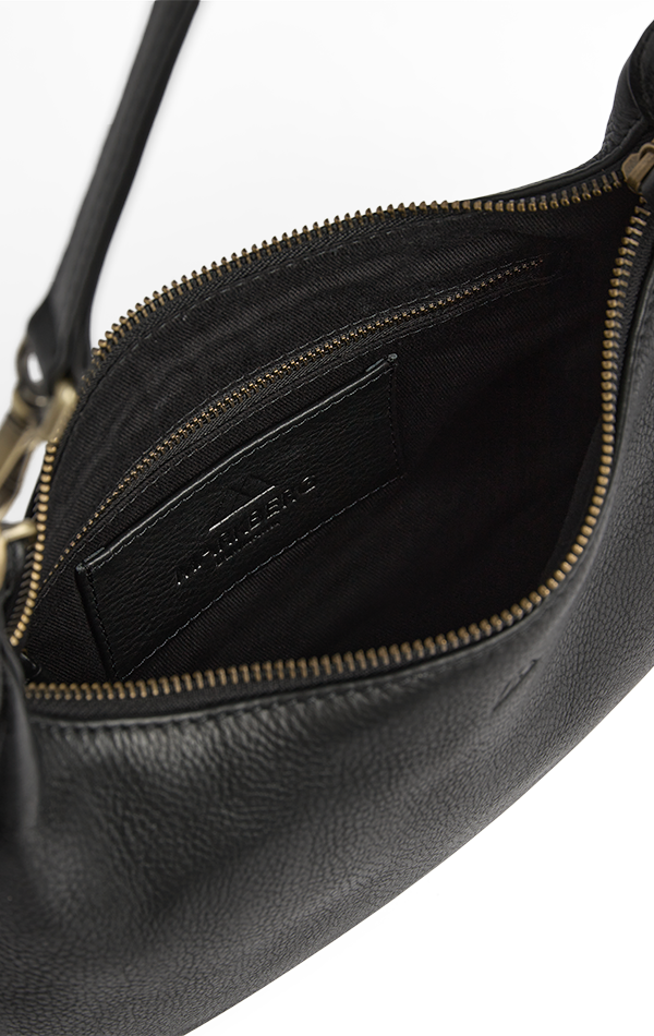 Elegant crossbody-veske med en myk, avrundet form. Vesken har et hovedrom med glidelåslukking og en innvendig glidelåslomme med god plass til hverdagens nødvendigheter. Den justerbare og avtakbare stroppen gjør vesken enkel å bruke både som skulderveske og crossbody.