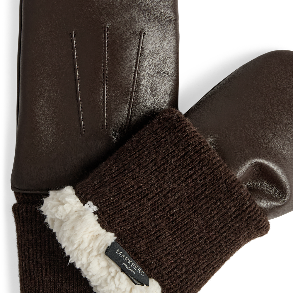 Deilige, varme votter i et klassisk design – perfekte for kalde dager. Det myke fôret og den brede ribbkanten gir maksimal komfort og varme, mens utsiden i glatt skinn gir et stilrent uttrykk.
