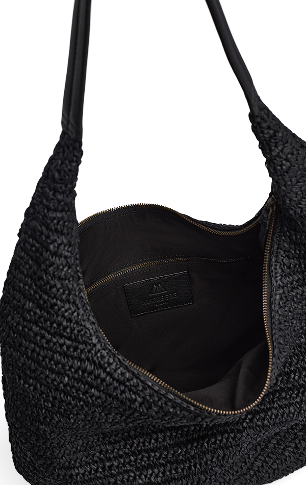 En lett og romslig veske med flettet struktur og elegant skulderrem. Det myke designet og den gode størrelsen gjør den ideell til både hverdagsbruk og sommerlige utflukter.