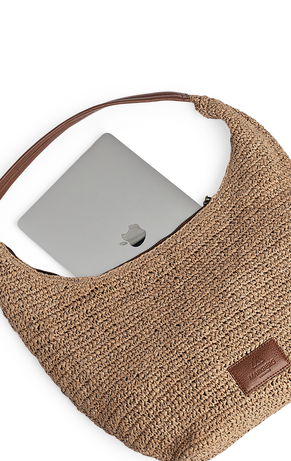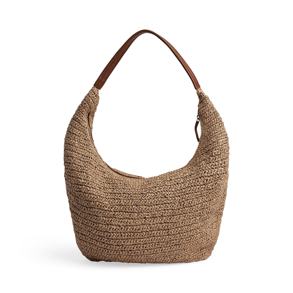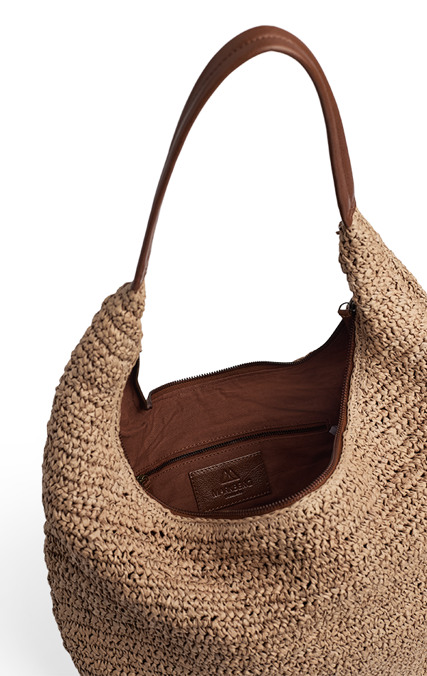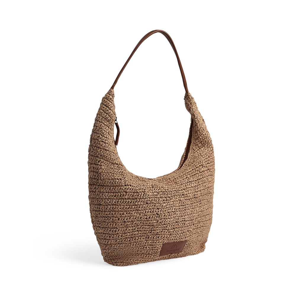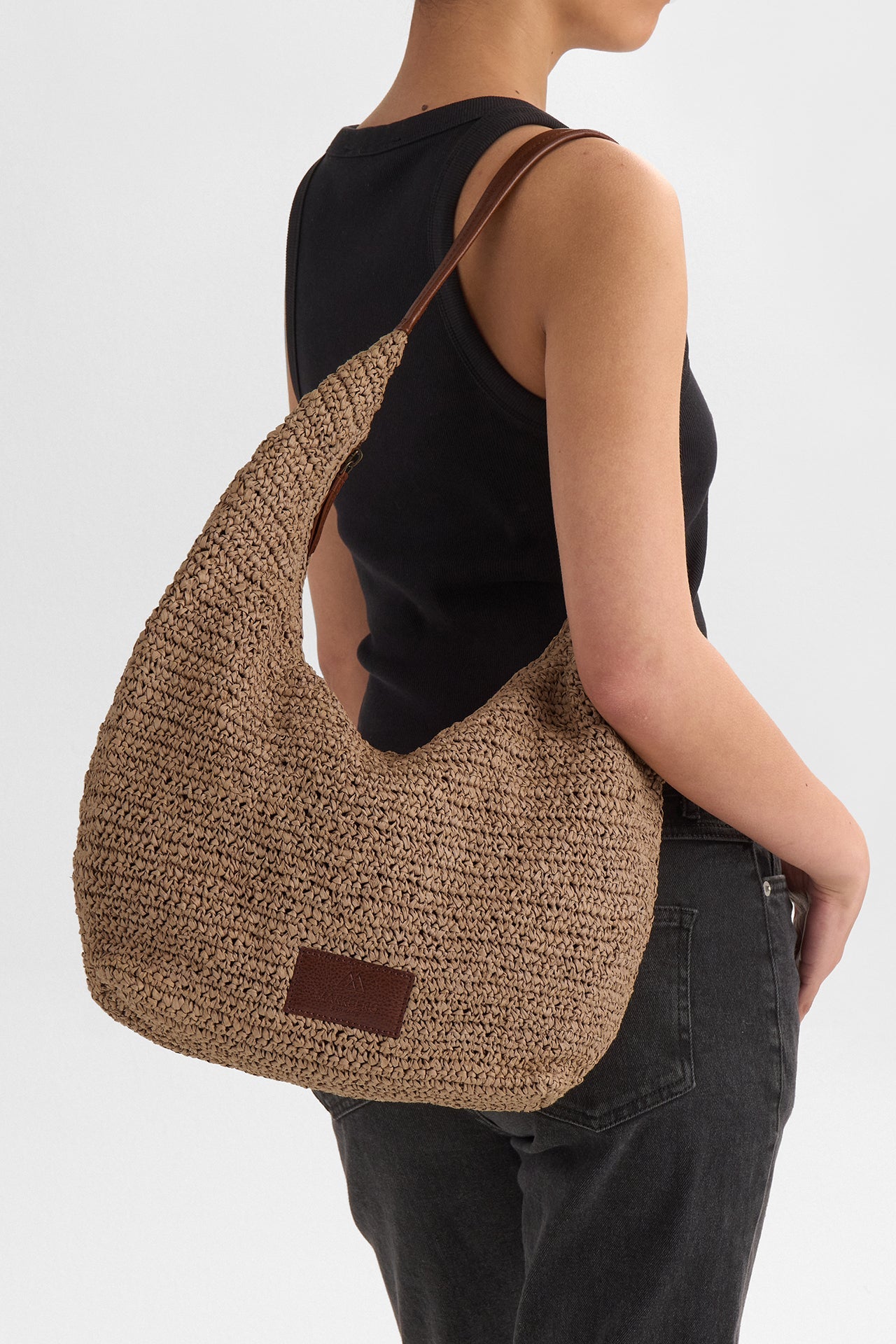 En lett og romslig veske med flettet struktur og elegant skulderrem. Det myke designet og den gode størrelsen gjør den ideell til både hverdagsbruk og sommerlige utflukter.