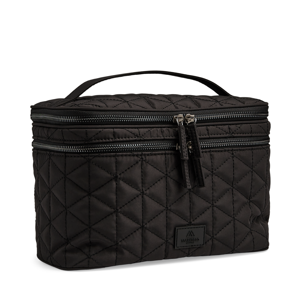 Glidelåsrommet øverst har en inndeling for sminkebørster samt en glidelåslomme