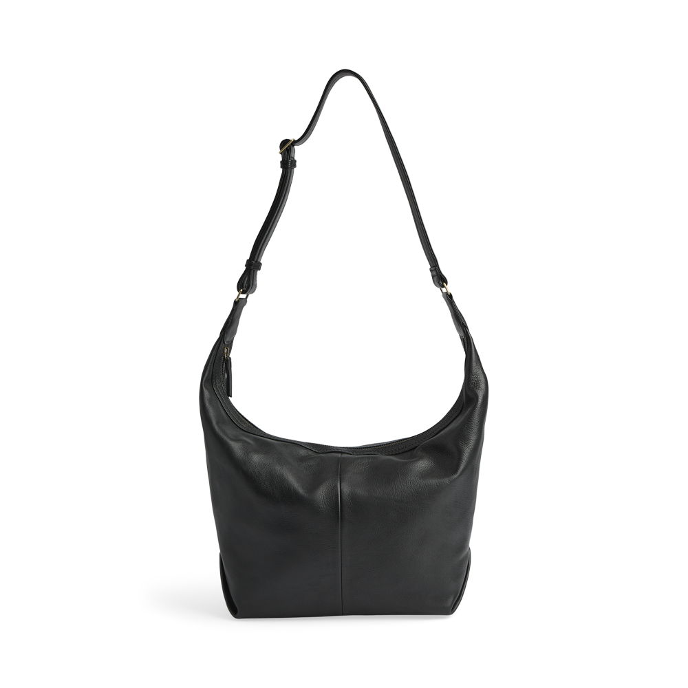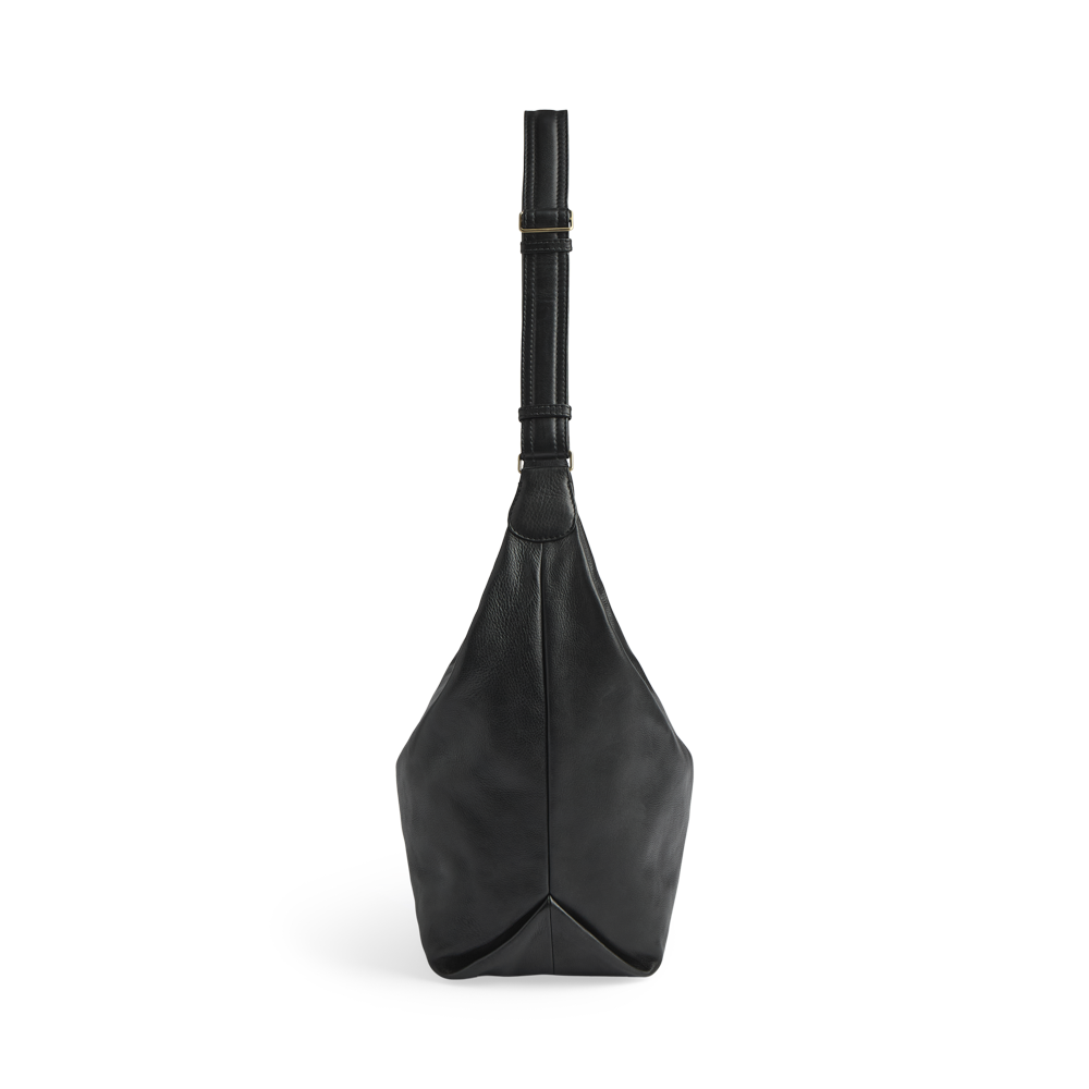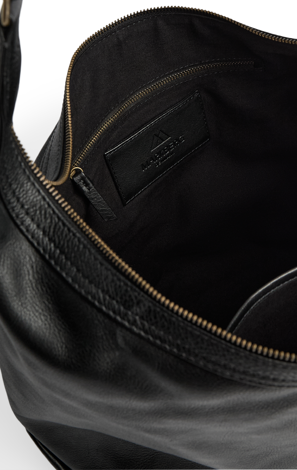 En romslig og elegant veske i mykt skinn. Den har en avslappet silhuett og et stilrent uttrykk, som gjør den ideell for både hverdag og arbeid.