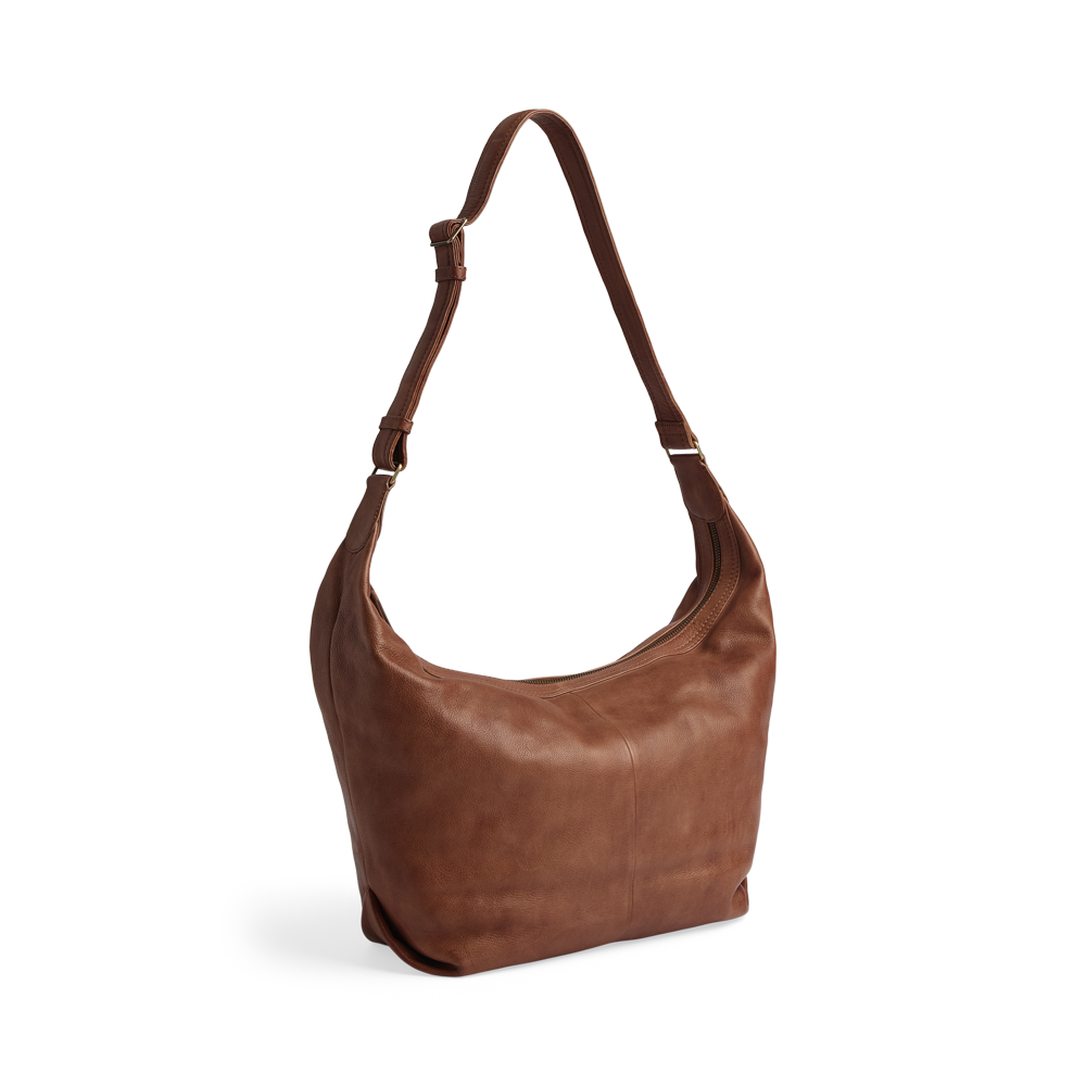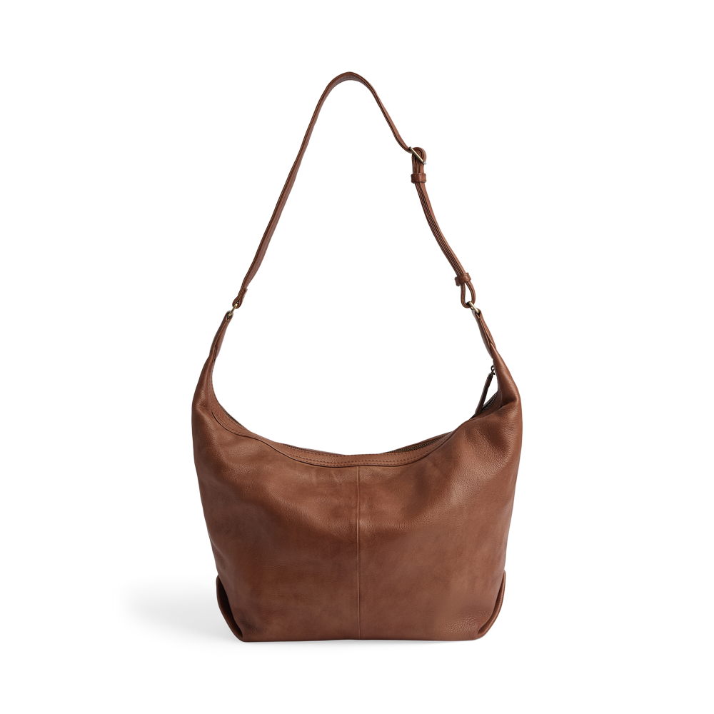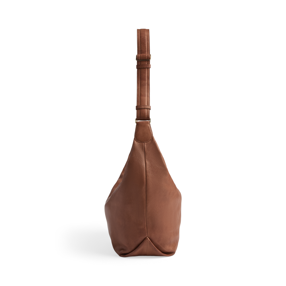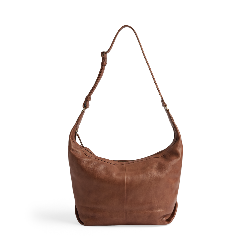 En romslig og elegant veske i mykt skinn. Den har en avslappet silhuett og et stilrent uttrykk, som gjør den ideell for både hverdag og arbeid.