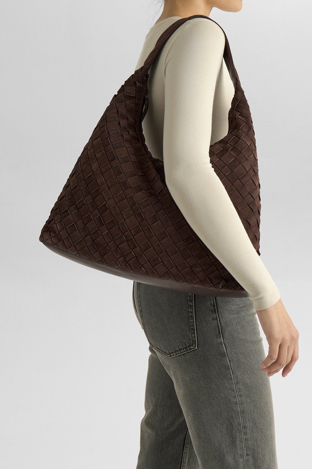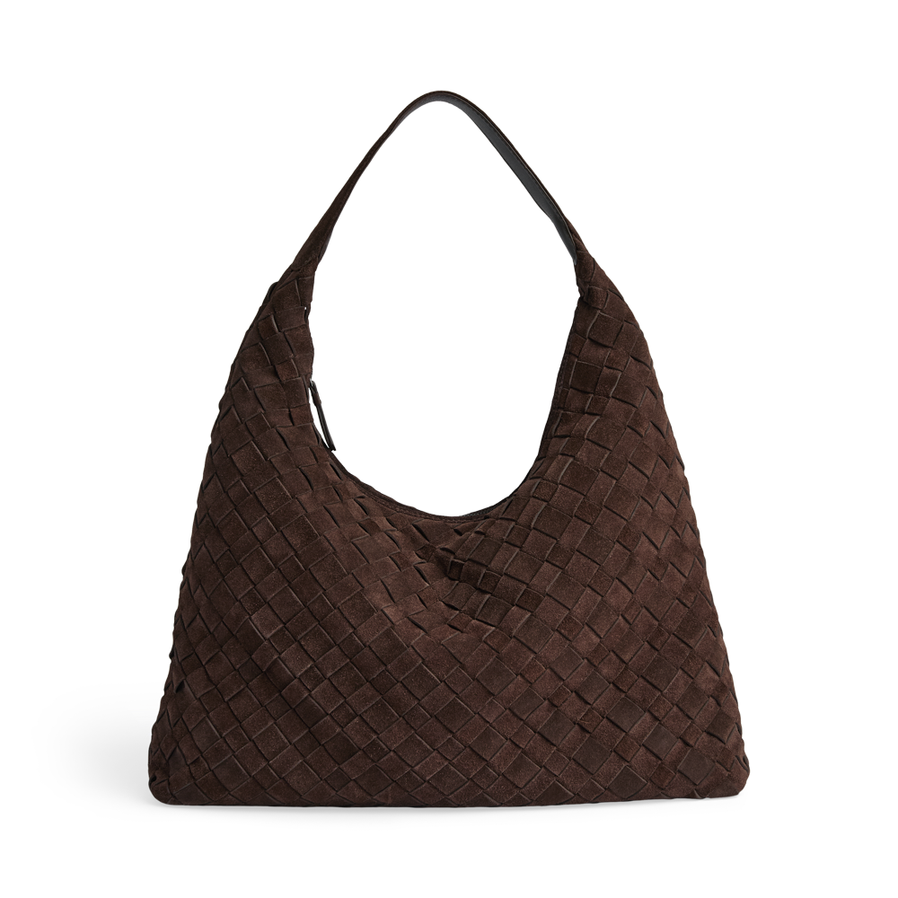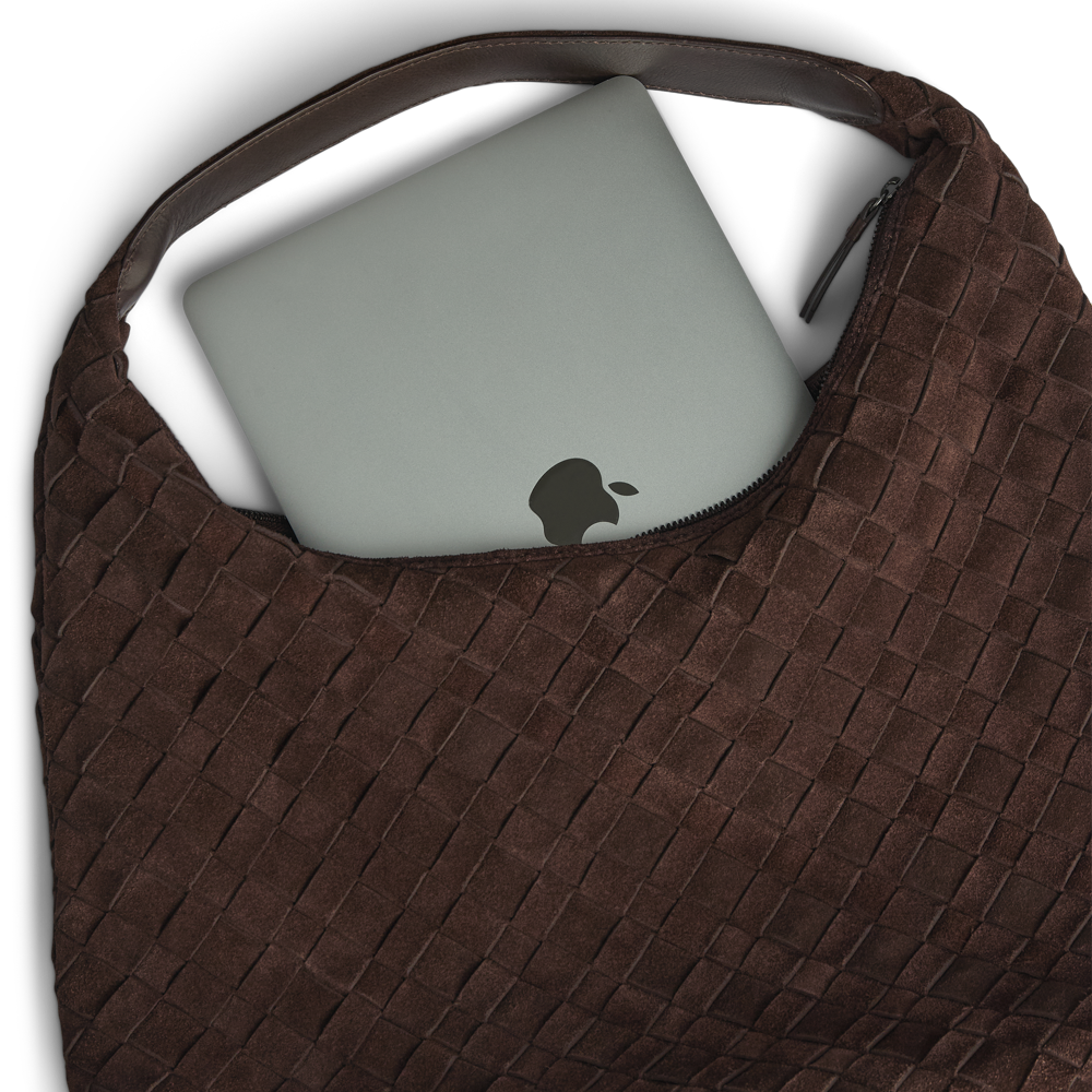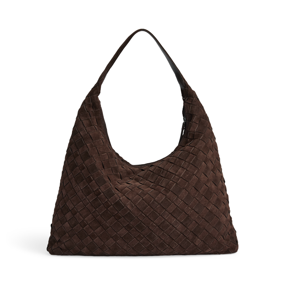 En romslig veske med håndflettet semsket overflate og et mykt, avslappet uttrykk. Det store hovedrommet lukkes med glidelås og gir god plass til hverdagens nødvendigheter. Vesken bæres komfortabelt over skulderen og er et stilfullt valg til både hverdag og jobb.